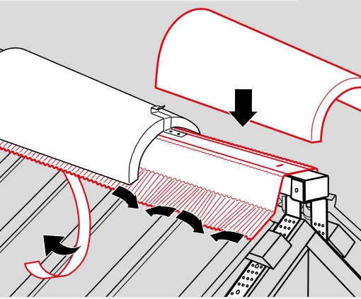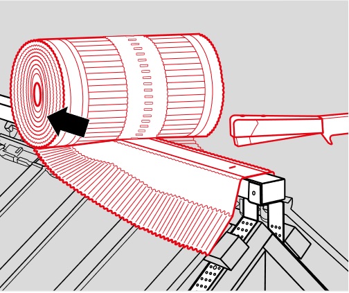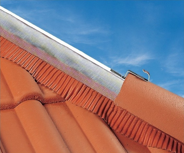 Современная коньковая лента обеспечивает максимальную вентиляцию и защищает коньковую зону от проникновения снега и дождя. Характерна высокой диффузией, которая позволяет выводить водяной пар накапливаемый под покрытием кровли. Проницаемость воздуха (при 200 кПа): 200 см2/п.м.. Материал: Две плиссированные полосы алюминия толщиной 0,14 мм склеены и прошиты с технической тканью нитями устойчивыми к факторам окружающей среды; от нижней стороны по краям покрыты полосами бутилового клея.