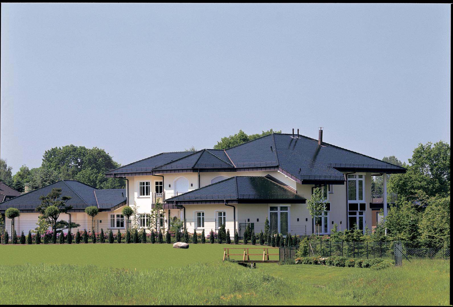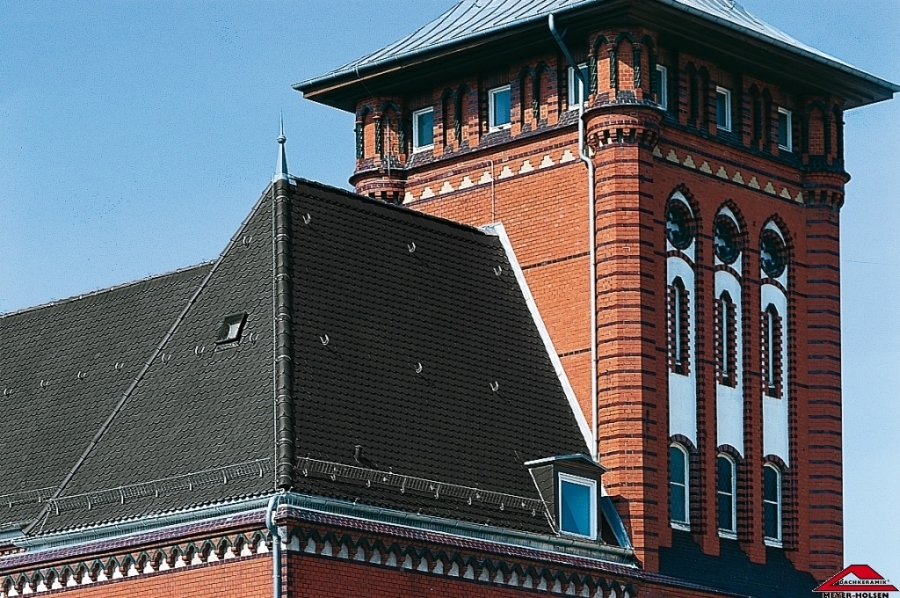 Красивое, универсальное и самое трудоемкое керамическое покрытие кровли. С черепицей Biber 17,5х38 маркато светло-зеленый, marcato Schilfgruen Meyer-Holsen можно творить настоящие чудеса. Это многократно доказано великолепными объектами, кровли которых покрыт черепицей Бобровый хвост. Этой черепицей можно выполнить рисунок на кровле и покрыть кровлю любой сложности, включая башни, конусы практически любого радиуса, включая сложные выпуклые или вогнутые участки, ендовы и примыкания. Именно с помощью черепицы Biber архитекторы и заказчики могут осуществить любые свои фантазии относительно геометрии кровли и ее цветового решения.