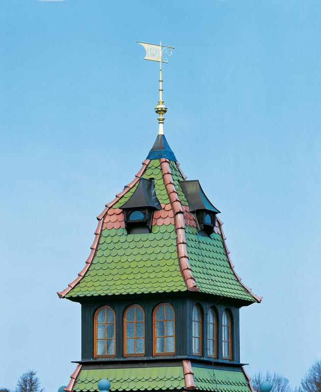 Красивое, универсальное и самое трудоемкое керамическое покрытие кровли. С черепицей Biber-classic, 38x18 см Nobless октябрь 4, Nobless October 4 Creaton можно творить настоящие чудеса. Это многократно доказано великолепными объектами, кровли которых покрыт черепицей Бобровый хвост. Этой черепицей можно выполнить рисунок на кровле и покрыть кровлю любой сложности, включая башни, конусы практически любого радиуса, включая сложные выпуклые или вогнутые участки, ендовы и примыкания. Именно с помощью черепицы Biber архитекторы и заказчики могут осуществить любые свои фантазии относительно геометрии кровли и ее цветового решения.