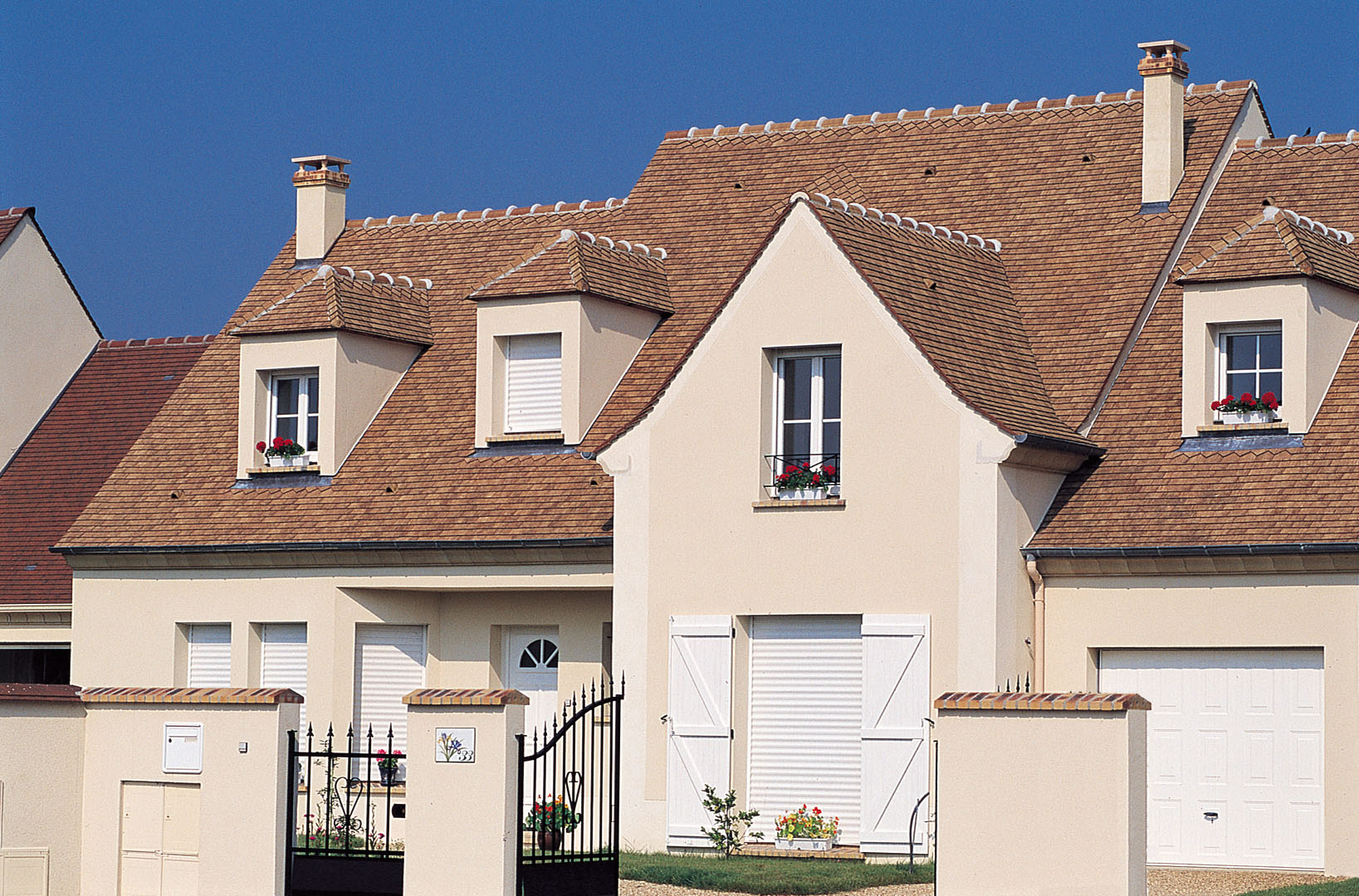 Произведенная во французском регионе Иль-де-Франс из местных глин, черепица Eminence (Эминенс) является эталоном мелкоформатной черепицы. Внешний вид черепицы успешно сочетается как с большими современными домами, так и с более традиционными частными строениями.