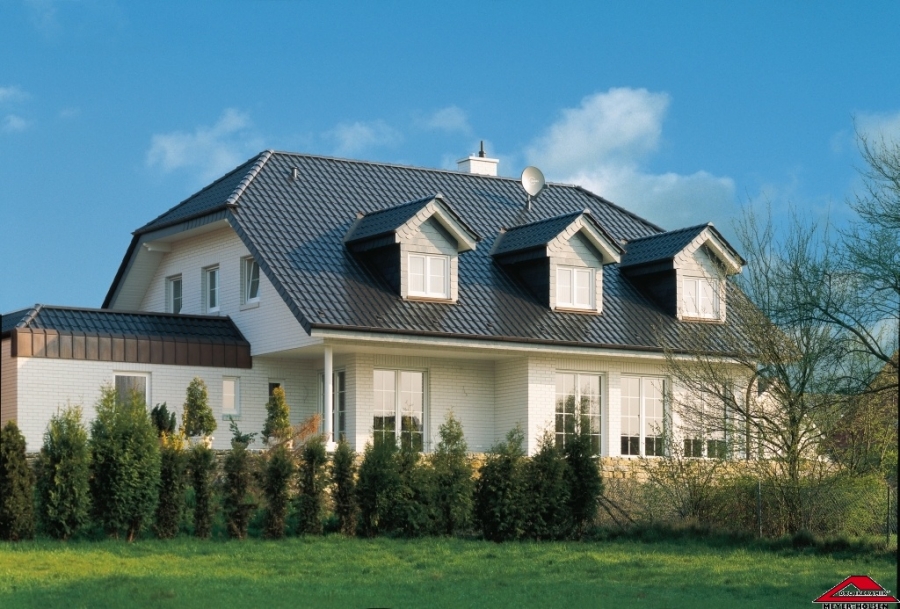 Оригинальными достоинствами модели Ravensberger маркато синий "Фризен", marcato Friesenblau Meyer-Holsen являются внешний вид и облегченный вес - идеальное сочетание экономичности и эстетичности. Равенсбергер самая легкая черепица в ассортименте Мейер-Хольсен и одна из самых легких черепиц на рынке в целом. Ее вес составляет всего 30 кг/кв.м. Низковыраженная волна помогает легко выполнять узлы примыкания как к прямым кирпичным стенам, так и к сложным деревянным перерубам. При их устройстве не придется срезать верхнюю часть черепички в местах соприкосновения со стеной. Важным преимуществом модели Равенсбергер также является богатая цветовая гамма (в том числе изготовление спеццветов) и выгодная цена!