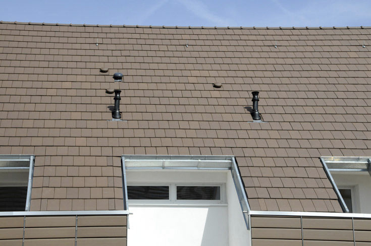 Крупноформатная плоская черепица превосходного качества Volnay PV состаренный "Лоз", vieilli lauze Terreal - эффектная и элегантная, с большими возможностями применения.
