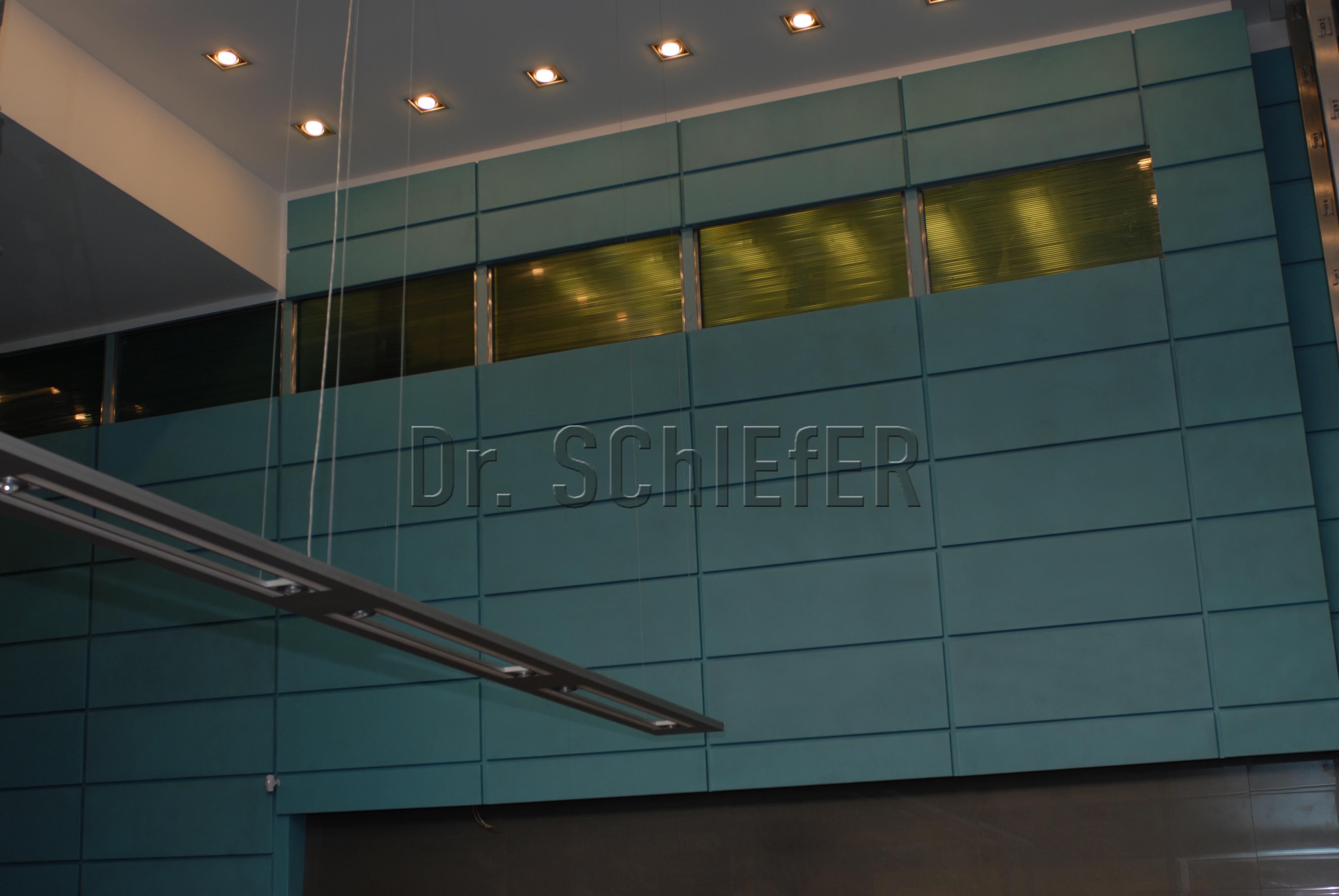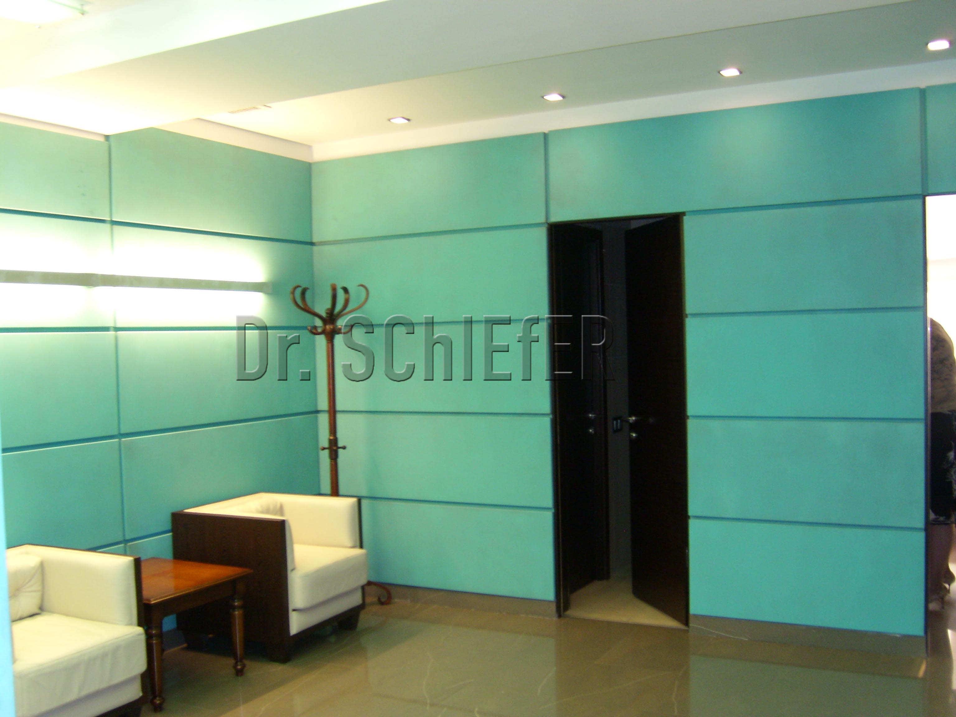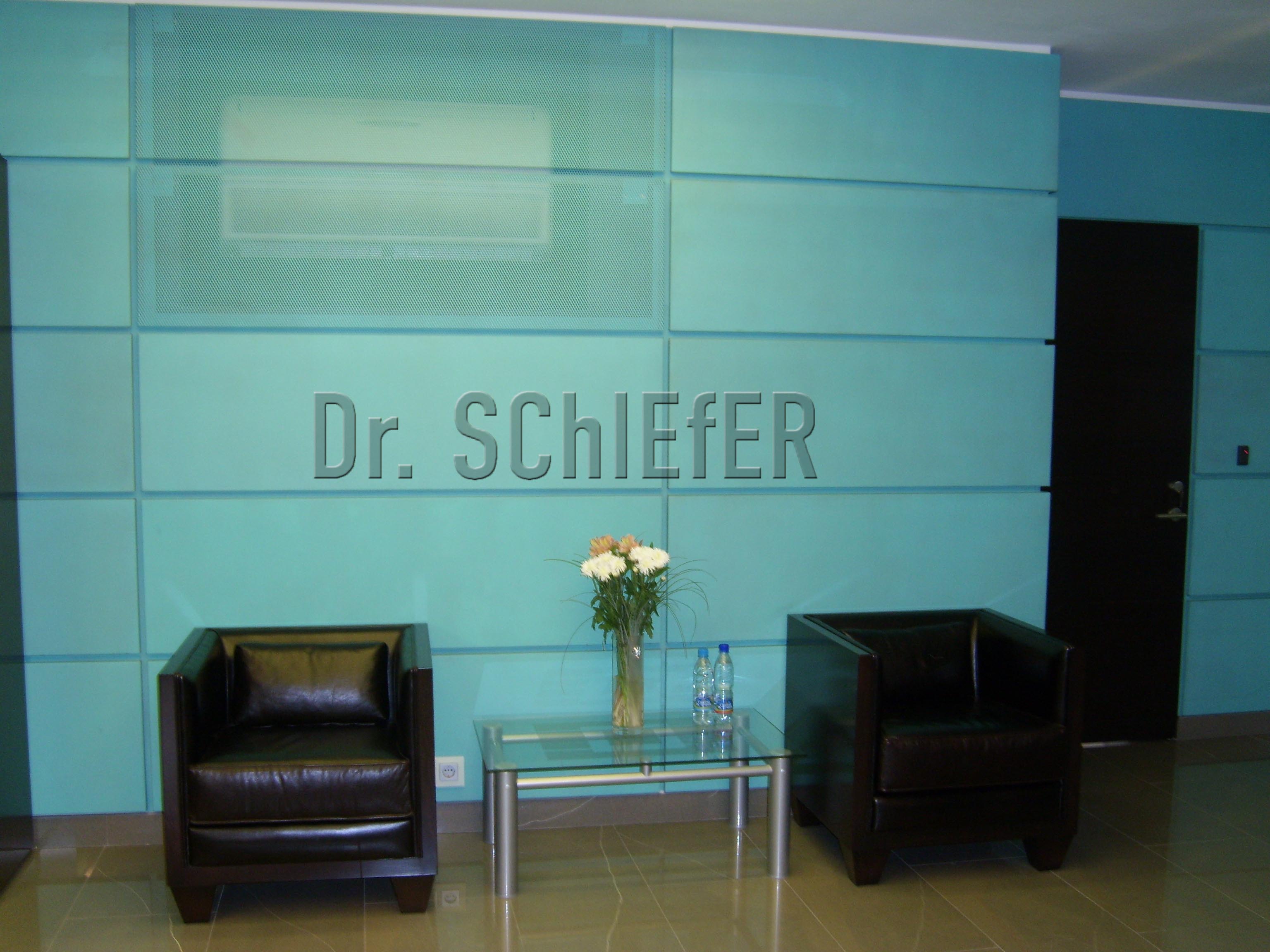 Кассеты из патинированной меди были применены для отделки приемной и комнаты переговоров в Номос-банке.