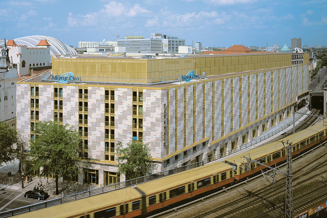 Для создания однородного фасада, кирпичные узоры обволакивают полностью все здание – не только гостиничную часть, но и прилегающую к ней парковку (Заказчик этого объекта берлинский «Berliner Parking Partner» GmbH). Длинный фасад оптически разделен на одинаковые части вертикалями окон. Особенность восточного фасада здания состоит в том, что расстояние между его окнами сокращается постепенно справа налево. Визуально это значительно укорачивает фасад.