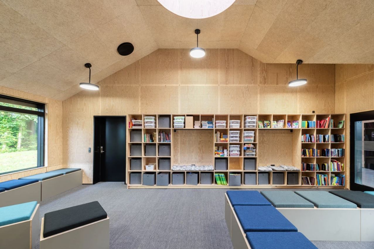 Новое здание школы рассчитано на 15 учеников и включает в себя классные комнаты, комнаты для групповых занятий, общие зоны, а также комнаты для учителей и бесед. Проект предусматривает как пространство для совместной деятельности, так и пространство для размышлений и уединения. Это дает детям хорошую возможность сосредоточиться на усвоении знаний, развить хорошие и доверительные отношения с учителями, а также создает благоприятную среду для совместной работы.
