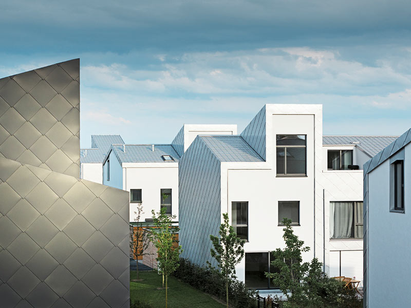 Немецкие звездные архитекторы со штаб-квартирой в Лос-Анджелесе и Берлине имеют опыт проектирования домов для топовых звезд из «фабрики звезд», таких как Бред Питт. Однако в Тельтауне они строили для среднего класса. В своих городских, но одновременно близких к природе проектов особое внимание они уделяют материалам и высоким техническим требованиям в сочетании с привлекательным внешним видом. Главными действующими лицами здесь являются фальцевые картины на кровле и фасадные ромбы PREFA.