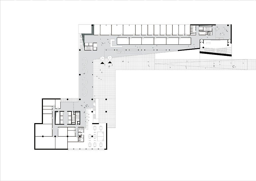 Важнейшим элементом комплекса стала площадь, выполненная без барьеров. Она служит соединяющим мостом между офисным зданием и малоэтажной пристройкой, использующейся в культурных целях. Восточный край этого здания образует павильон с аудиторией для общественных мероприятий.