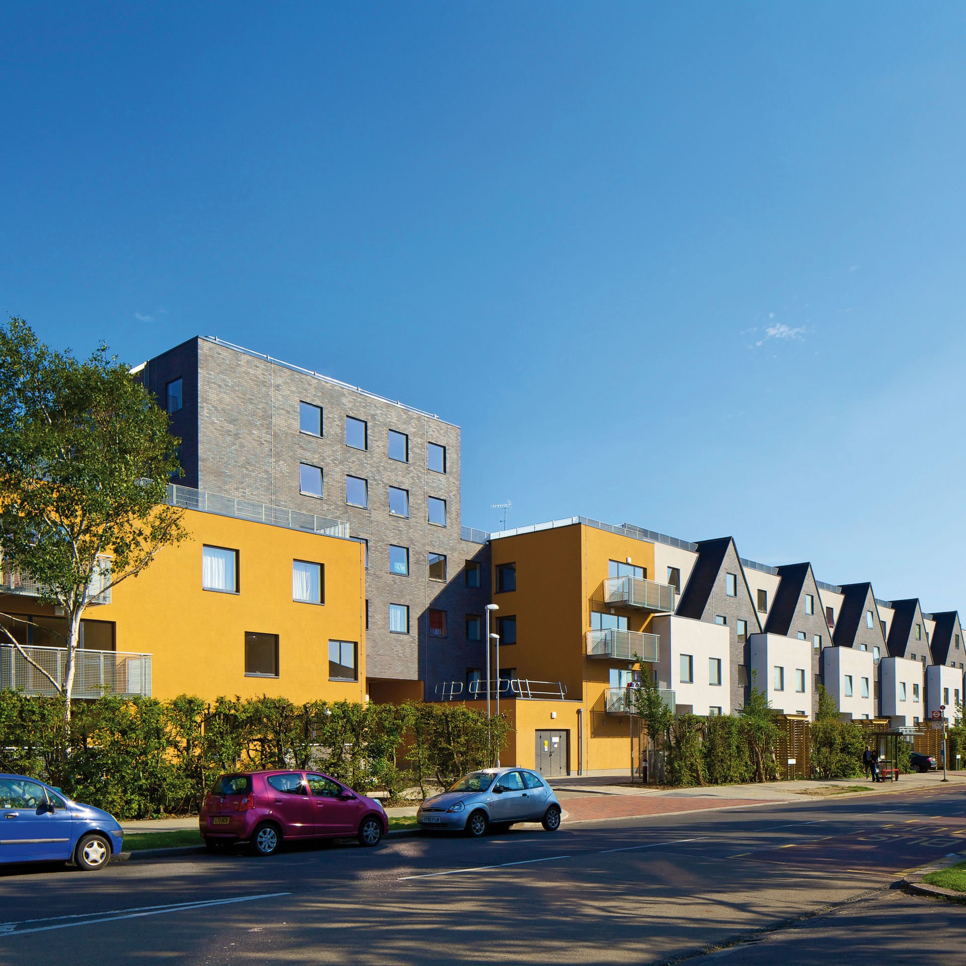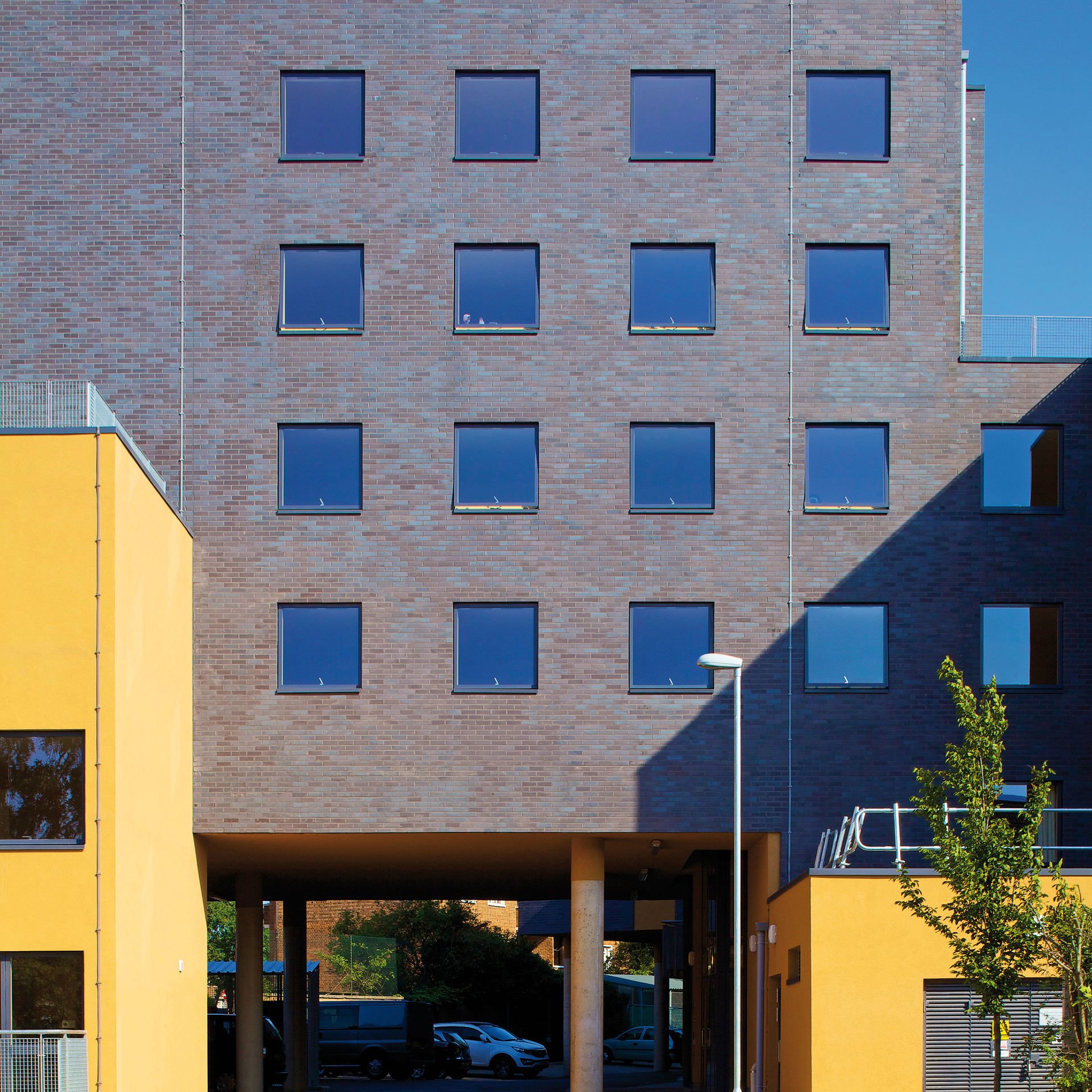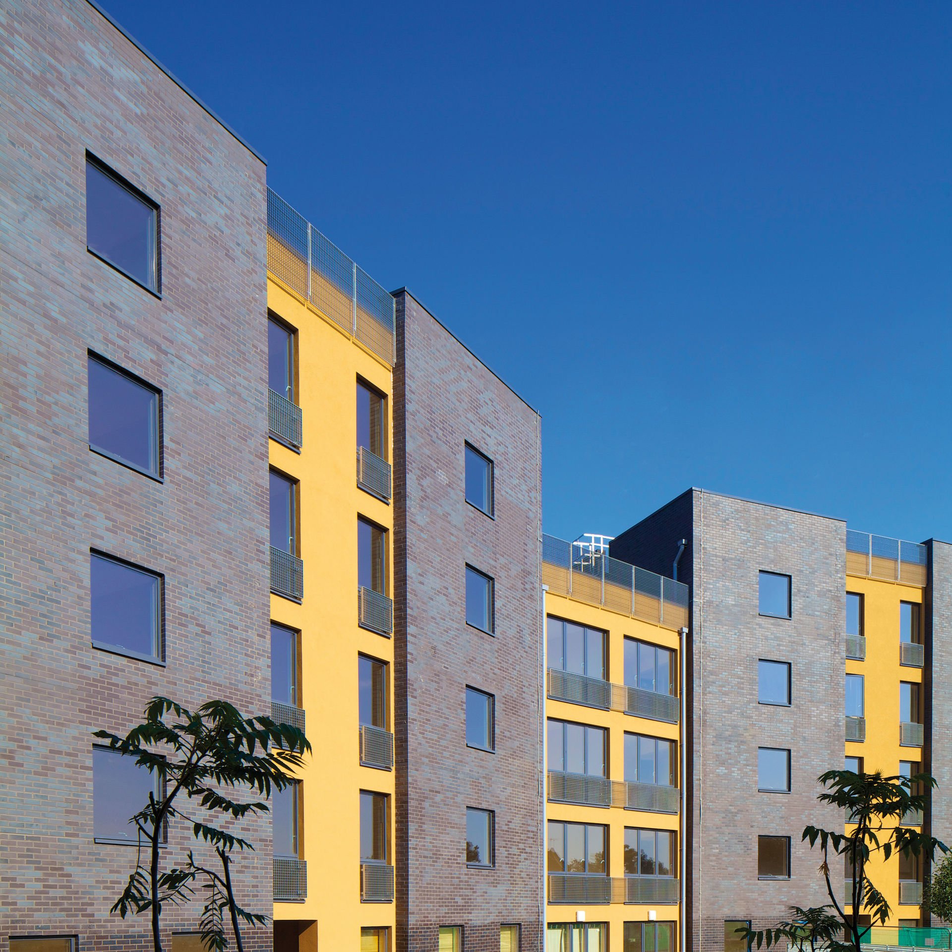 Именно поэтому лондонское архитектурное бюро "Sheppard – Epstein – Hunter" создало проект зданий, визуально максимально приближенных к местным постройкам, архитектурно объединяя старый и новый миры. С помощью плитки Stroeher (Штрёер)серии Keravette в цвете черный металлик (336 metallic Schwarz) довольно длинный фасад здания оптически был разделен на сектора, создавая иллюзию небольших домишек, стоящих в ряд.