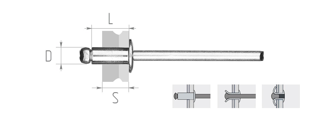 Каждая заклёпка характеризуется тремя ключевыми размерами: