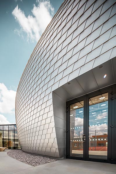 Тендер на строительство состоялся еще в 2013 году. Но этот проект сопровождал архитекторов еще многие последующие годы. "Проектирование - это только первый этап. После этого мы были на строительной площадке один - два раза в неделю. Это был очень сложный проект с большим количеством деталей, которые нужно было учитывать", - рассказывает Нашинец. Префа стоял на первом месте для архитекторов при выборе материала для отделки фасада. Они уже использовали PREFA при строительстве своего предыдущего проекта - университета. "Алюминиевые гонты идеально вписались в нашу концепцию. Они легкие, и вы можете работать с ними точно и хорошо их подогнать. Это было очень важно для этого объекта", - подчеркивает Кубалик.