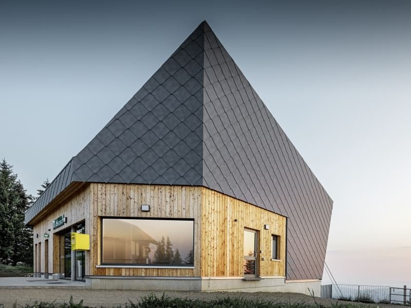 «Квадратные ромбы Prefa - идеальный материал. Это как кожа. Ромбы выглядят как чешуйки, и эта структура соответствует характеристикам кожи", объясняет Вулльшлегер. Особое преимущество заключалось в том, что с Prefa кровля и стены могли быть сделаны из одного материала, а переход от дерева к ромбу выполнялся точно и несложно. «Кажется, это так очевидно», - подчеркивает Вульшлегер. «Хорошие идеи - это одно. Но вы не просто должны проектировать, вы также должны убеждать людей. В этом и заключается главная задача», - объясняет архитектор, который с большим энтузиазмом занимается своей профессией в течение двадцати лет и смогла «сделать кусочек своего дома» с помощью этого проекта.